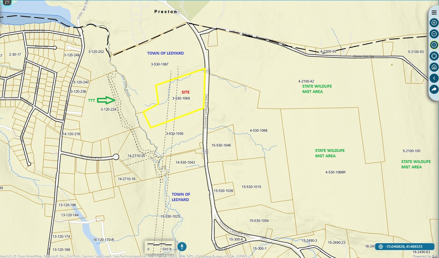This Town Share funding would allow Avalonia to acquire1069 Colonel Ledyard Highway 20.23 +/-acre parcel is adjacent to the Town owned 1087 Colonel Ledyard Hwy and also the trail head to the Tri Town Trail.